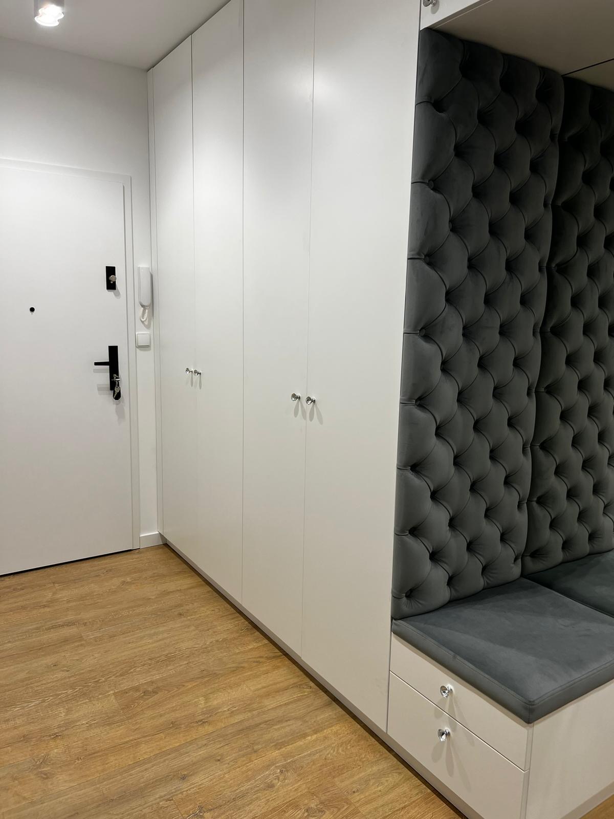 Mieszkanie o powierzchni 65 m² znajduje się na trzecim piętrze i składa się z 1 sypialni z dużą szafą oraz dodatkowego pokoju, który można dowolnie zaaranżować. Przestronny pokój dzienny połączony z aneksem kuchennym wyposażonym w lodówkę, zmywarkę, piekarnik, pralkę oraz telewizor. Dodatkowo mieszkanie posiada pralnię, dużą szafę w przedpokoju oraz balkon, który zapewnia przestronność i wygodę. Do mieszkania przynależy miejsce parkingowe nadziemne oraz komórka lokatorska. W budynku znajduje się również winda, rowerownia oraz wózkarnia.
